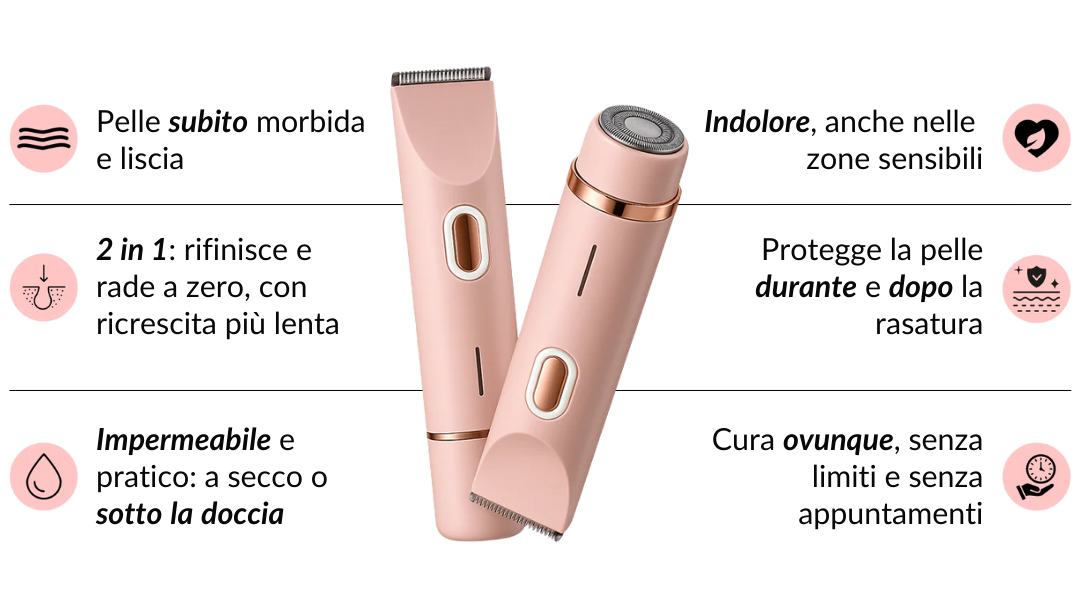 Aree d’uso: zona intima, ascelle, gambe, corpo